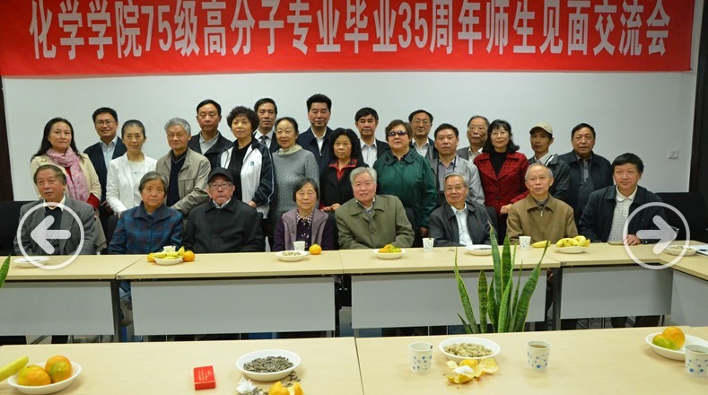 75级高分子专业共有毕业生20名,多年来在科学研究、产业化建设和社会管理等多项工作中取得突出成绩,捷报频传。此次聚会在国内的17名同学都从全国四面八方赶来,看着曾经的老照片,聊着过去美好的日子,洋溢着幸福的微笑。此次聚会是75级高分子专业的同学第一次全班聚会,聚会在愉快的气氛中圆满结束,分别时大家依依不舍,同时对自己的母校和学院送上了最美好和诚挚的祝福。
