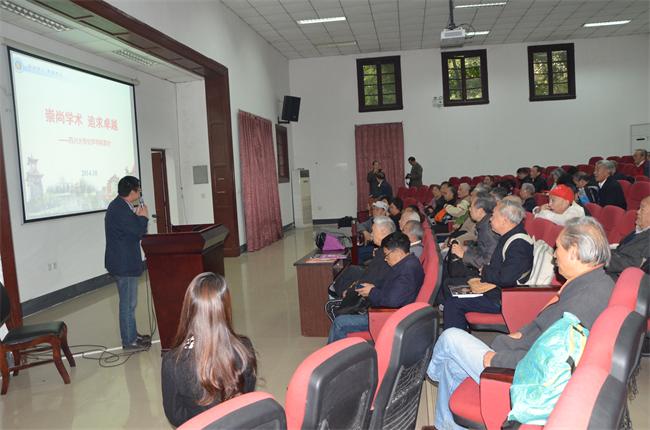 王智猛书记给各位老前辈们介绍了学院近年来的发展和现状,向老校友们表达了真切问候和美好祝愿,并诚挚邀请校友们在2016年学校120周年校庆时再荣归母校。