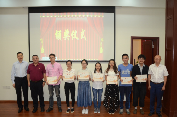 老师的培养,表示自己会继续踏实学习,努力奋斗,将来有所成就,回馈母校、回馈社会。最后,在场嘉宾、领导为获奖同学颁奖,并合影留念。
