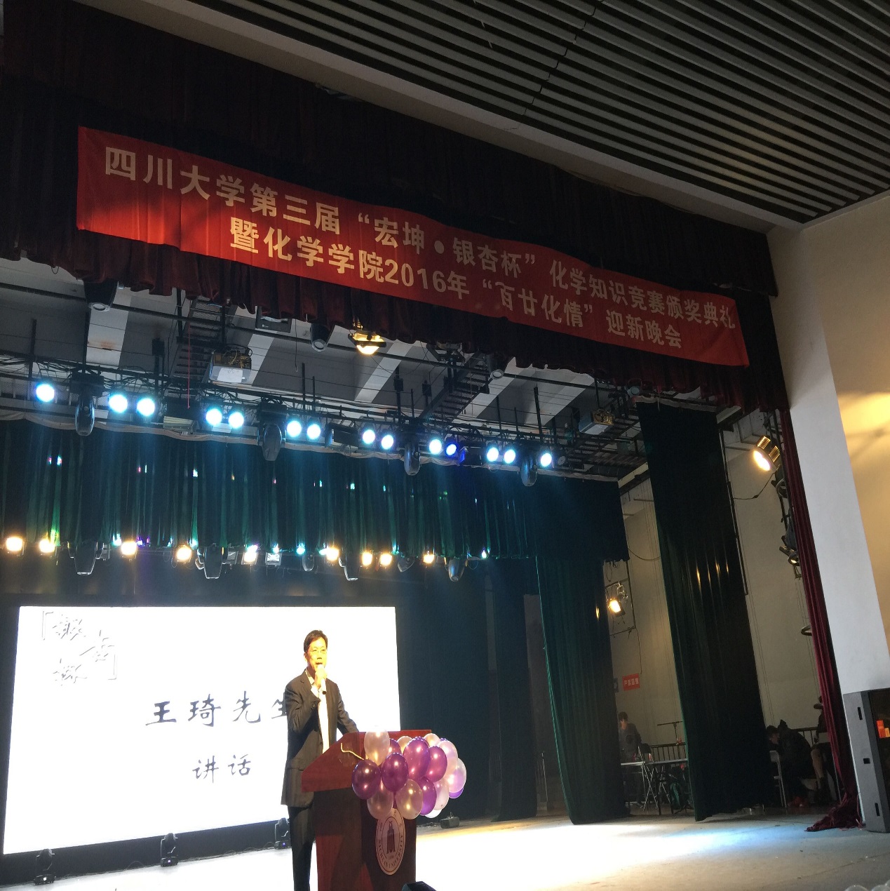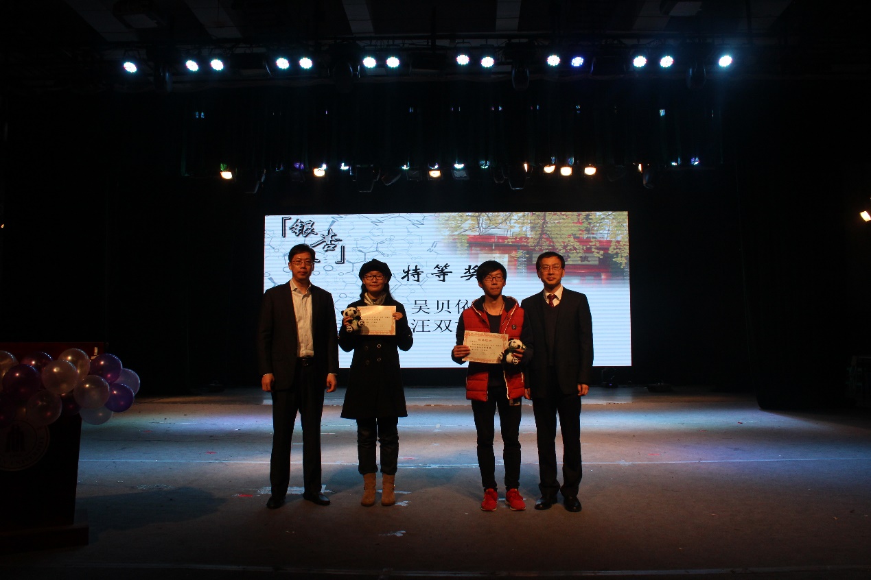 第三届“银杏杯”化学知识竞赛颁奖典礼,由谢均老师主持。余孝其院长对竞赛内容进行了详细的介绍,魏于全副校长、王玉忠院士分别做出讲话,表达了对同学们认真学习科学文化知识、开拓创新、全面发展的殷切希望,郭勇教授宣读了获奖名单,并由到场嘉宾向获奖同学颁奖。王琦校友与大家分享了自己的人生经历,鼓励同学们认真学习专业知识、全面拓展自己的才能。