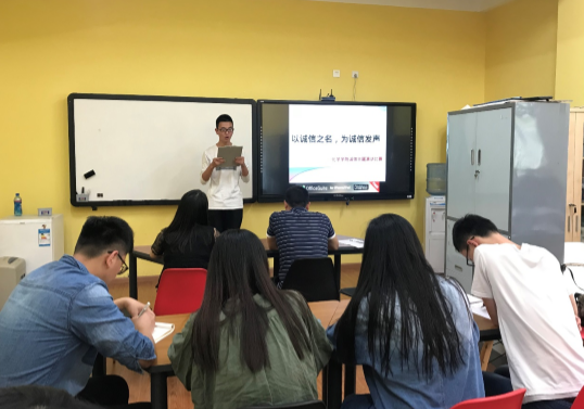 首先是荀励治同学首先登场,以《论语》中的句子“人而无信,不知其可也”开篇点题,举例分析了人为何要诚信、为何不能无信的问题,语句铿锵,措辞有力,给人留下深刻印象。