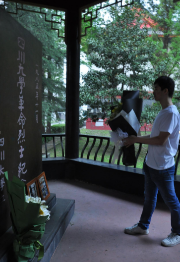 望江校区的革命烈士纪念碑前举行了“缅怀革命先烈,凝聚青春力量”为主题的清明公祭革命先烈爱国主义教育活动。