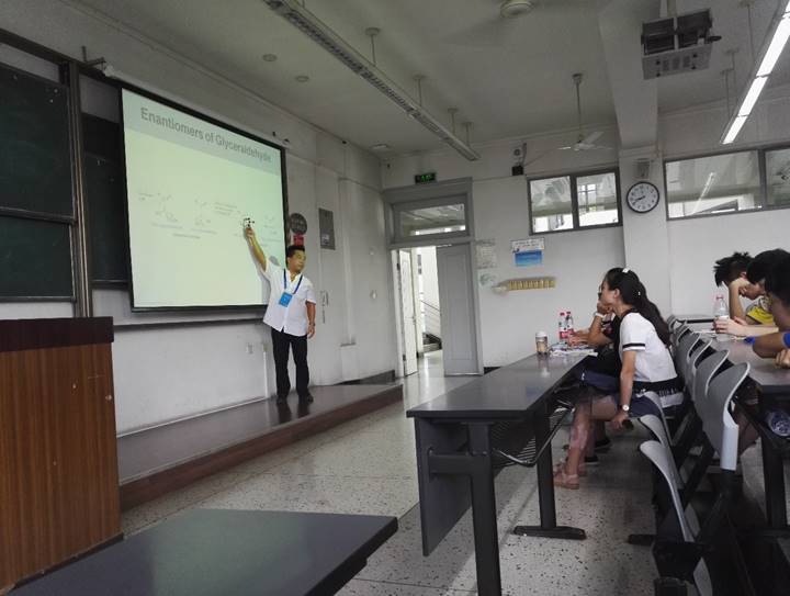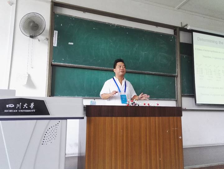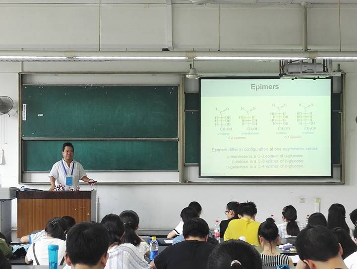 “实践及国际课程周”,在江安校区一教B203教室为同学们带来一门“Organic Chemistry of Biomolecules”课程。Toy教授从糖类、氨基酸、肽和辅酶等在生物学方面有重要作用的有机分子出发,充分结合日常生活实际,生动而又具体地讲解了各种生物大分子的相关知识,让学生了解和理解了有机化学在生物学和生物化学中的作用。