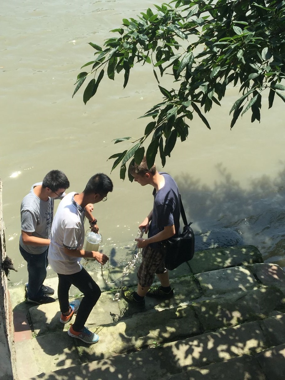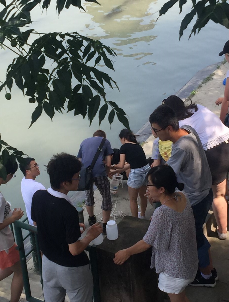 2017年7月10日上午9:00,在性视频 江安校区综合楼B座B305,罗明亮老师与房川琳老师向7名约克大学学生和23位交流营成员讲解了水质调查活动中取水的流程、方法与注意事项。随后,我们乘坐校车到江安校区白石桥、黄龙溪与府南河三处取水。水样取好后,运至望江校区理科楼实验室冰箱存放,以备后面的实验使用,本次取水活动圆满完成。