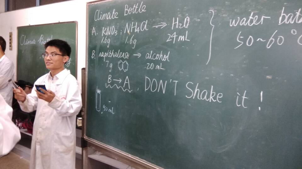 创意化学社的成员为我们详细讲解了实验步骤。接着,7名约克大学学生与交流营23名成员在创意化学社社员的指导下开始制作风暴瓶。按照实验步骤,同学们认真仔细地制作出了风暴瓶。约克大学的同学们在约克大学时还未进入实验室做实验,对于本次在川大参加的创意化学实验系列活动,他们给予的评价是:“We are enjoyable。”在和谐愉快的氛围中,本次活动取得了圆满成功。