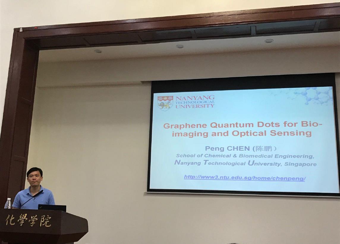 的邀请,2017 年6 月5 日上午,南洋理工大学陈鹏教授在化学馆321 报告厅做了题为“Graphene Quantum Dots for Bio-imaging and Optical Sensing”的学术报告。此次报告会由性视频