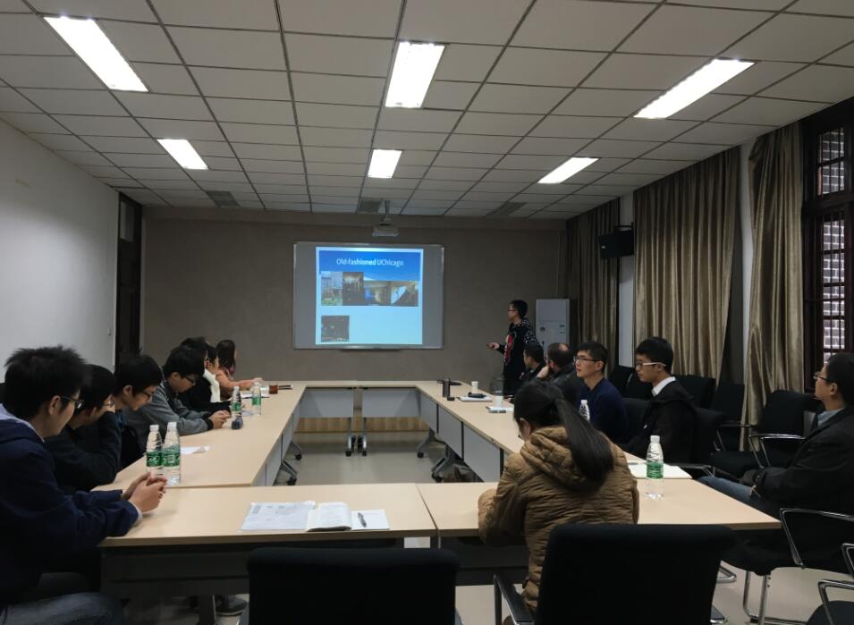 2013级、2014级共九名拔尖班学生在化学馆122会议室对此前赴美国伊利诺伊大学香槟分校(University of Illinois at Urbana-Champaign, UIUC)、西北大学(Northwestern University )和芝加哥大学(The University of Chicago)访学交流进行总结汇报。余孝其院长主持了汇报会,王智猛书记、李梦龙副院长、谢均副书记、郑成斌教授、Jason Chruma教授、教学科研科科长姜林老师,外事秘书马晓爽老师参加了会议。