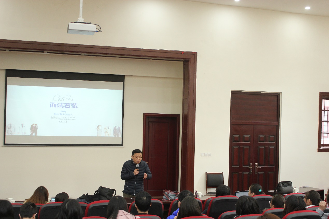 随后,冯勇先生补充了几点对于应聘中小型企业的注意事项,强调要理性地思考进而选择合适的岗位,并且注意张弛有度。在面试着装的选择方面,柴璐女士强调了西装合身的重要性与颜色的选择,并补充了其他的注意事项。