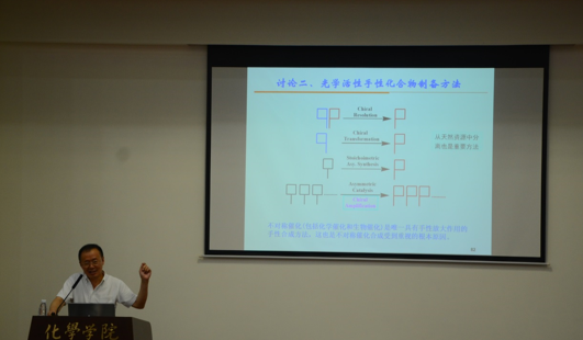 院长余孝其教授和中国科学院院士冯小明教授在开幕式上致词。在为期六天的暑期学校培训期间,南开大学周其林院士首先给学员们授课,风趣严谨地说明了手性在自然界中的普遍存在,详细讲解了手性科学的萌芽、发展和黄金时代,并突出介绍了中国科学家在手性科学发展中做出的杰出贡献,周其林院士以其独到的科学眼光,向全体学员们生动展示了手性科学的历史发展和机遇挑战;来自大连理工大学的吕小兵教授,介绍了环氧烷烃不对称开环及聚合反应在高分子化学方面的应用;中科院化学研究所范青华教授,介绍了不对称氢化和手性催化剂的负载;上海有机所唐勇院士则从“失败与偶然中的科学发现”这一角度,科学幽默地给学员们说明了做学问要寻根问底、火眼金睛、淡定坚持;上海有机所的游书力教授,深刻讲解了钯、铑、钴、铱在不对称C-H官能化中的详细机理及在有机反应的广泛应用;上海交通大学崔勇教授、中科院化学研究所刘鸣华研究员以及清华大学王梅祥教授,分别介绍了手性在MOF材料、超分子化学、生物催化转化领域的发展应用;华东师范大学胡文浩教授、中国科学技术大学龚流注教授,讲解了有机小分子、金属有机小分子联合催化在不对称合成中的高效应用;最后,性视频