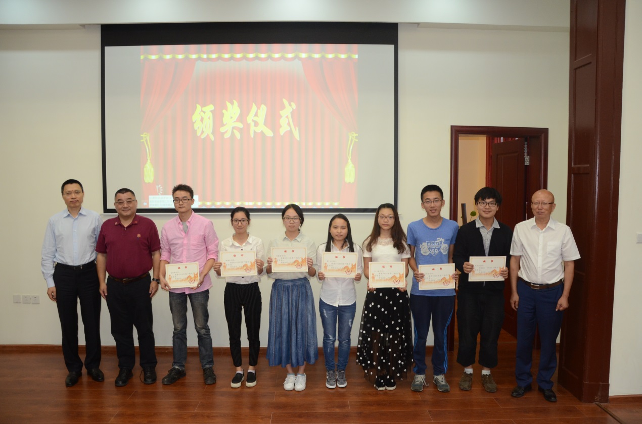 老师的培养,表示自己会继续踏实学习,努力奋斗,将来有所成就,回馈母校、回馈社会。最后,在场嘉宾、领导为获奖同学颁奖,并合影留念。
