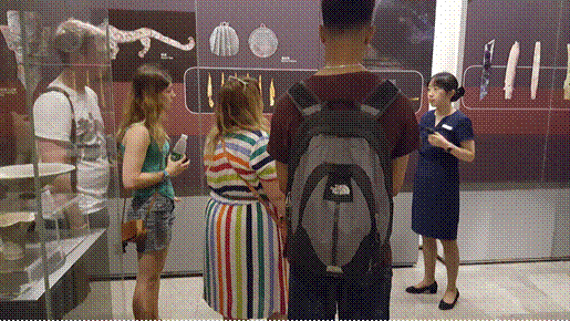参加国际交流营的26位同学与4位英国约克大学学生,赴位于成都市区的金沙遗址博物馆。途中,几位活泼热情的外国朋友用较流利的中文介绍了自己,一行人在欢歌笑语中来到目的地。