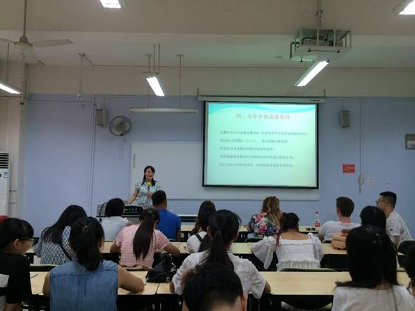 2014级辅导员张愉老师主持了本次活动并介绍了学校历年实践及课程周的情况,提出同学们要与外国留学生共同探索、共同分享、相互学习的希望,并祝愿国际交流营圆满成功。随后,张立春老师为大家带来了关于水质调查的讲座。