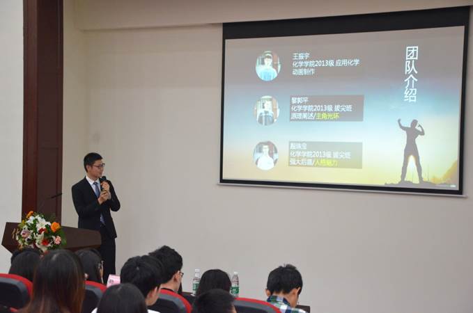 本次竞赛吸引了来自西安电子科技大学、西南政法大学等学校,川大艺术学院、计算机学院、数学学院等爱好动画制作的同学参加,学生参与面广,取得了预期效果。经过初赛、复赛的激烈角逐,最终八支队伍进入决赛。比赛中,各个参赛队伍如八仙过海各显神通,通过各种不同的动画制作软件展示了别具一格的化学实验操作动画,优美的动画不仅令人赏心悦目,也提高了同学们的化学实验素养,可谓一举多得。每支队伍首先向大家介绍自己的队伍以及实验动画的构想,播放完动画作品后评委老师进行点评。性视频