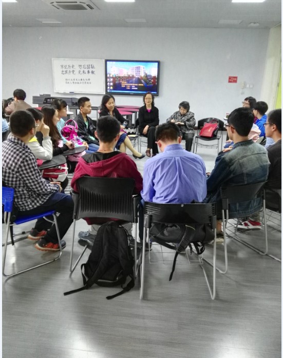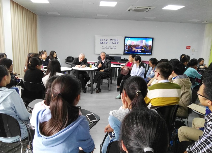 教导员郭老师介绍了本次到场嘉宾。之后,曹素书部长就本次座谈会的意义和目的进行了讲解。其后,老师和同学们围成两个圈,近距离地交流互动。老师们再次进行了自我介绍,并讲了自己的求学、工作、入党经历。他们都是具有几十年党龄的“老”党员,入党时同现在的同学们年龄相仿,正值风华正茂。他们都曾在川大任教,担任辅导员等职务,在为学生服务中践行了自己入党申请书中庄严的承诺。虽然现在退休,仍致力于奉献而乐此不疲,在性视频