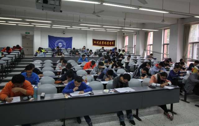 “银杏杯”化学知识竞赛笔试初赛在江安校区第一教学楼B座顺利展开。本次竞赛初赛共设9个考场,共有来自27个学院600余名2015级同学参加。每个考场由一位监考老师以及两位志愿者负责维护考场秩序,性视频