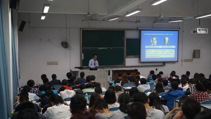 报告会在谢教授对同学们的美好祝愿中结束。报告会后,谢教授和同学们进行了交流讨论。通过此次报告会,同学们接触到了理论化学的一些前沿领域,对化学专业学习有了新的认识,体会到化学学科的无穷奥妙。