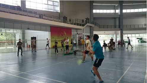 下午两点,决赛正式进行。一开始的男双比赛立刻让场上的气氛紧张起来,两个队的比分交替上升,最后“国际友人”队取得男双的胜利。随后“五化八门”队在男单比赛中扳回一城,最终在混双的比赛中“五化八门”凭借稳定的发挥取得胜利,“五化八门”也取得此次羽毛球比赛的团体冠军。