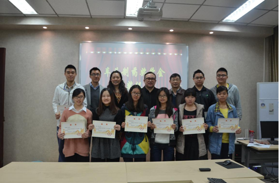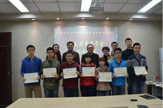 党委书记王智猛老师宣布获奖学生名单。然后,到场嘉宾为获奖学生颁发奖状。