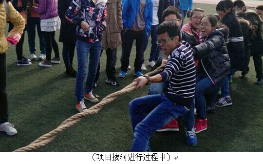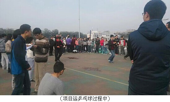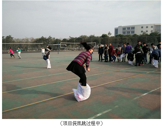 2014级全体同学以班级为单位参加本次活动。本次活动以“素质拓展,阳光成长”为主题,包括袋鼠跳、运乒乓球、夹气球、猜图、拔河五个项目。