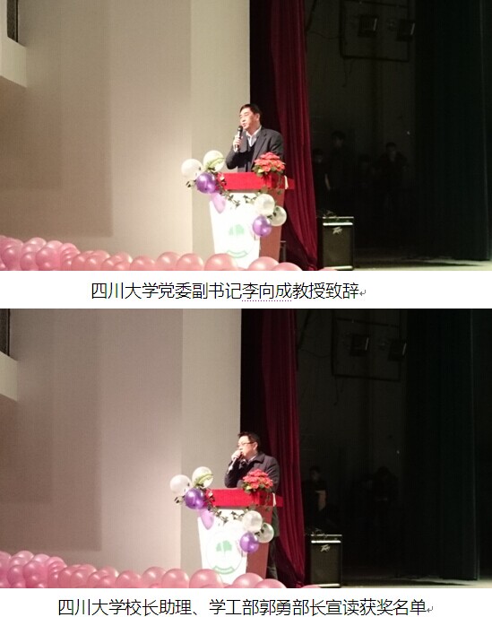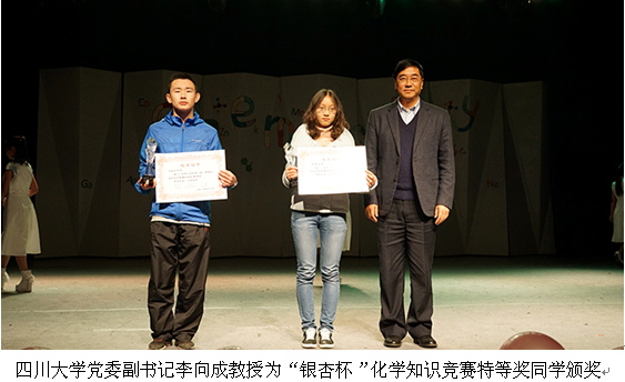 党委副书记李向成教授致辞,李向成副书记讲到化学与我们现代人的生活息息相关,鼓励在座的所有同学都要像谢校长讲到的,要有真学问。也希望我们所有热爱化学的同学们能够做好学问,并用自己所学做有益于社会的事!随后郭勇教授宣读获奖同学名单,领导们向同学们颁奖。至此,性视频