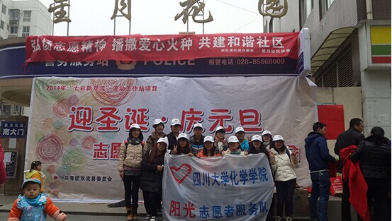 “阳光”青年志愿者服务队于2014年12月14日上午在成都双流西航港星月社区开展了“迎圣诞•庆元旦志愿者风采展示”活动。