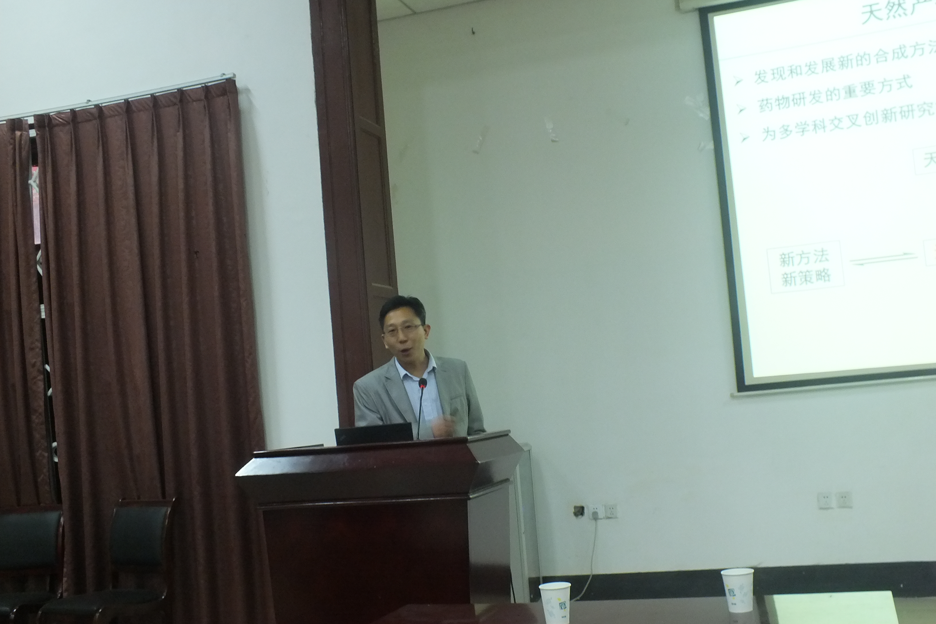 做题为“Total synthesis of polycyclic Natural products and Development of synthetic methodology”学术报告,报告在化学馆321报告厅举行。贾教授介绍了丝氨酸氨基诱导吲哚环4号位选择性C-H活化在多类吲哚生物碱天然产物全合成中的应用;Pd催化苯并呋喃的C-H活化氧化串联于天然产物Decursivine and Serotobenine全合成的应用以及天然产物Dragmacidin D的不对称全合成。贾教授在报告中系统而富有逻辑的研究,深入浅出的讲解让师生们颇受启发,随后性视频