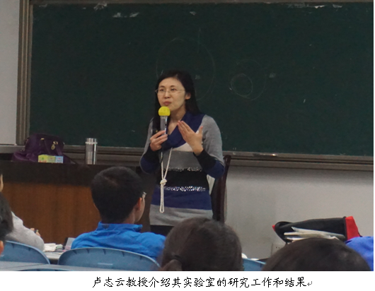 2014级全体学生带来了一场精彩的“有机光电功能材料”讲座。卢志云教授科研工作集中在具有光电性能的有机功能材料的设计合成以及性能的研究工作,近年来主要进行氢键自组装光电功能材料,包括超分子聚合物电致荧光、电致磷光材料和太阳能电池材料等的设计开发及分子结构性能关系的研究工作。