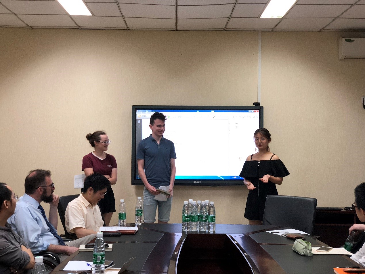 全职外教Jason Chruma教授主持了此次汇报会,三位实验指导教师余志鹏教授、杨千帆副教授、宾正杨副教授及学院外事秘书马晓爽老师参加了汇报会。