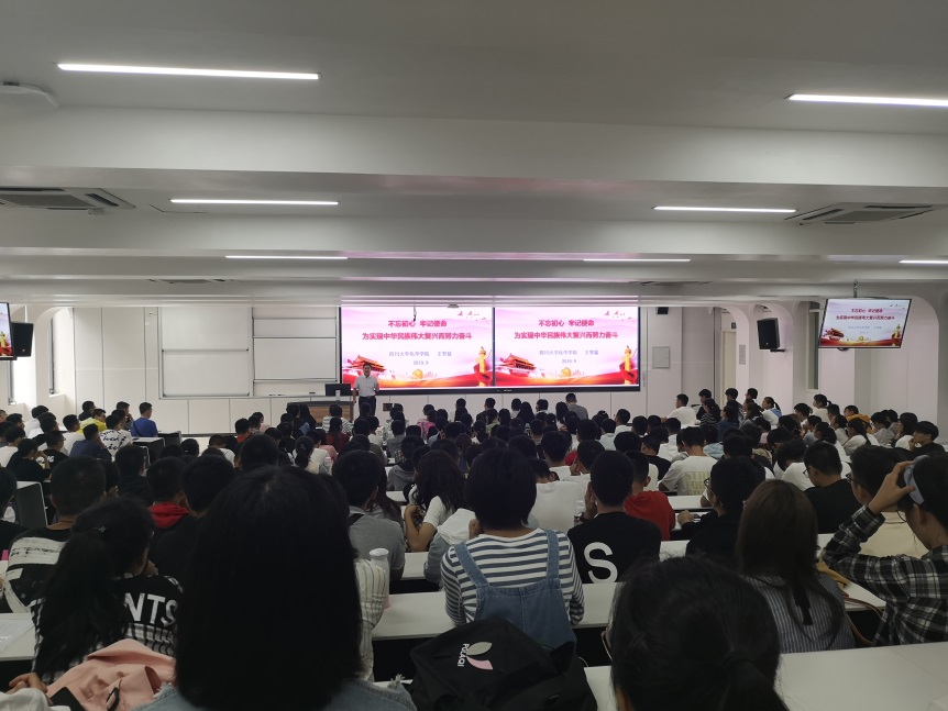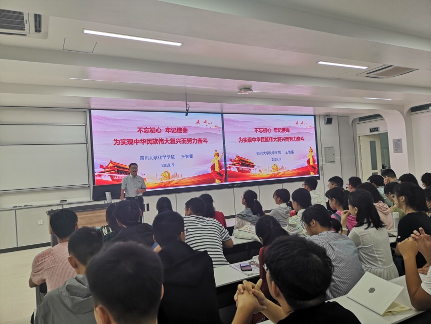 党委书记王智猛为学院2019级本科新生带来了一场主题为“不忘初心,牢记使命,为实现中华民族伟大复兴而努力奋斗”的讲座。
