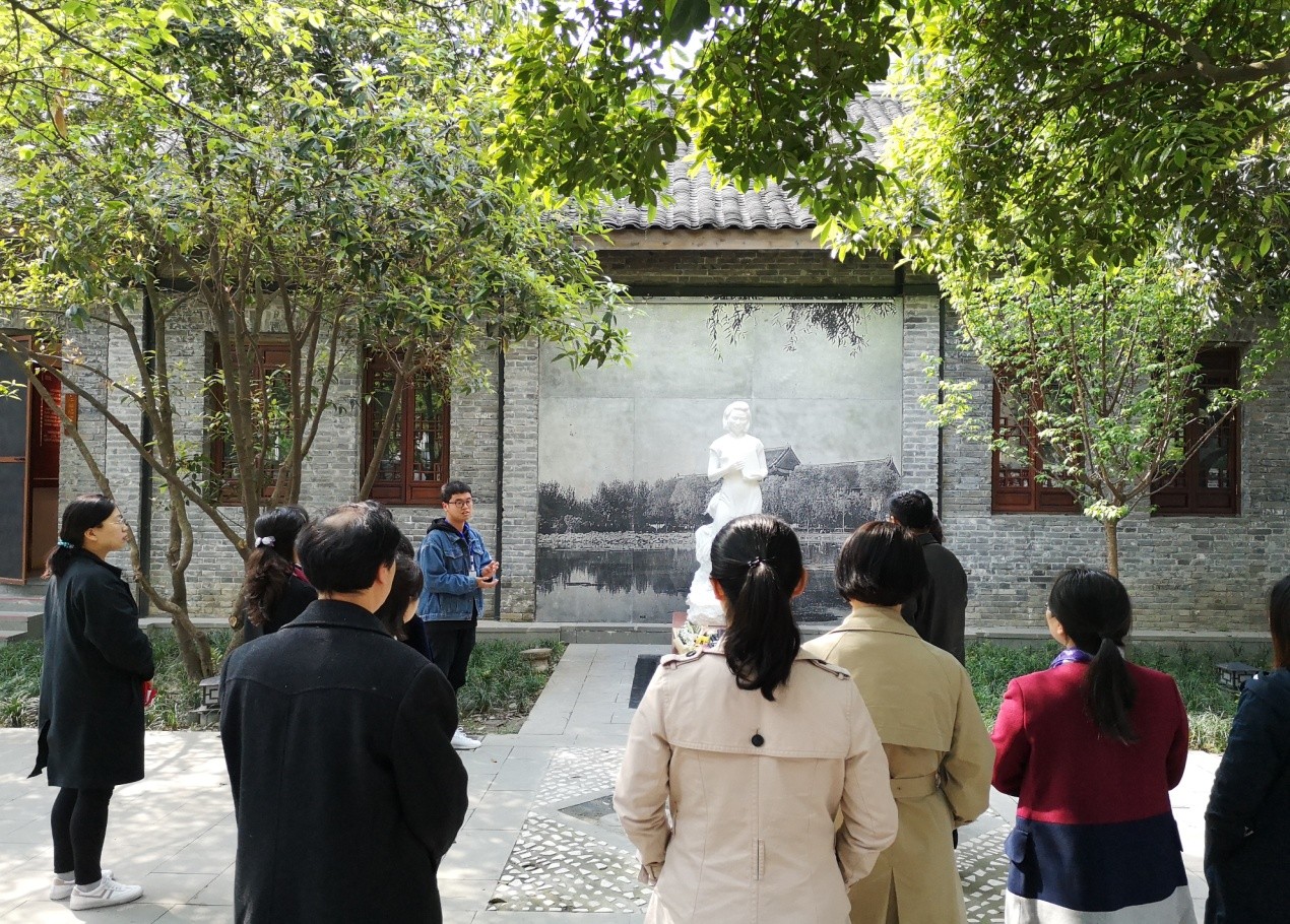 江姐纪念馆坐落在原川大女生院旧址,这里是当年江竹筠在读期间居住和生活过的地方。走进纪念馆,是一座手捧书本一袭白裙的汉白石雕像,生动展现了江姐写实亲切的学生形象。在纪念馆展厅,党员同志们跟随讲解员的讲解,认真参观了江姐当年珍贵的个人影像、档案以及同学的回忆记录,生动还原了江竹筠在川大就读的两年间,按照党的要求努力学习、追求真理并引领周围同学进步和她在川大读书期间的婚姻、家庭生活,为我们展示了一个鲜活的、有血有肉的钢铁战士和柔情母亲的形象,引发了党员们的感概与思考。