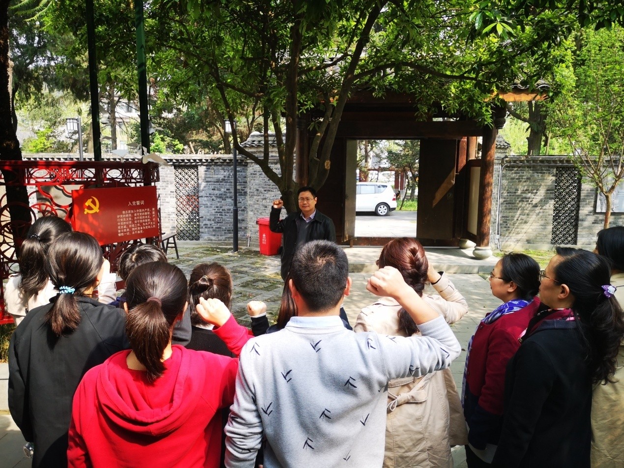 王智猛书记带领支部全体党员在江姐雕像前重温入党誓词