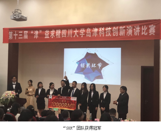 此次演讲比赛分为两轮,第一轮是产品介绍;第二轮是产品的效益和营销。根据赛前抽签顺序,第一轮演讲的顺序为:“SKR”团队,“遣唐使”团队,“厨匠”团队,“饮之源”团队。最终经过五位创新评审的点评和选择后决定,“遣唐使”团队和“SKR”团队获得进入第二轮演讲的机会。在第二轮演讲中,两支队伍分别介绍了他们的营销策略及产品价格,并拿出实力进行最后的角逐。冠军由现场的大众评审和所有在场评分老师打分来共同决定,最终“SKR”团队夺得第一名,“遣唐使”团队获得第二名,“厨匠”团队和“饮之源”团队获得第三名。由岛津公司领导、性视频