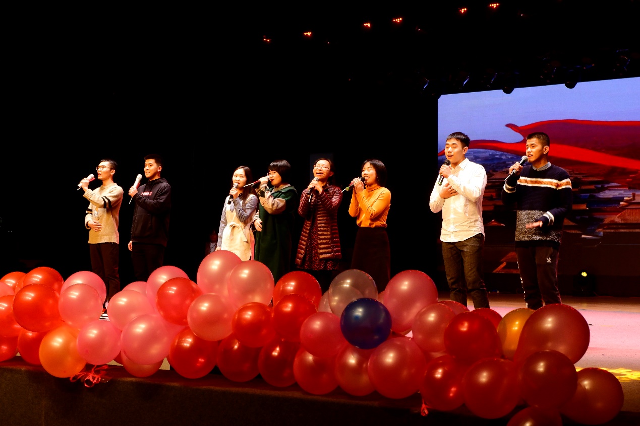 在迎新晚会上,2019级各班、团委学生会各部门先后献上了精彩的演出,全场观众掌声雷动、欢呼不断,广泛参与微信上墙、抽奖等活动。辅导员老师们也和同学们同台表演,一曲《国家》将现场气氛推向了高潮。