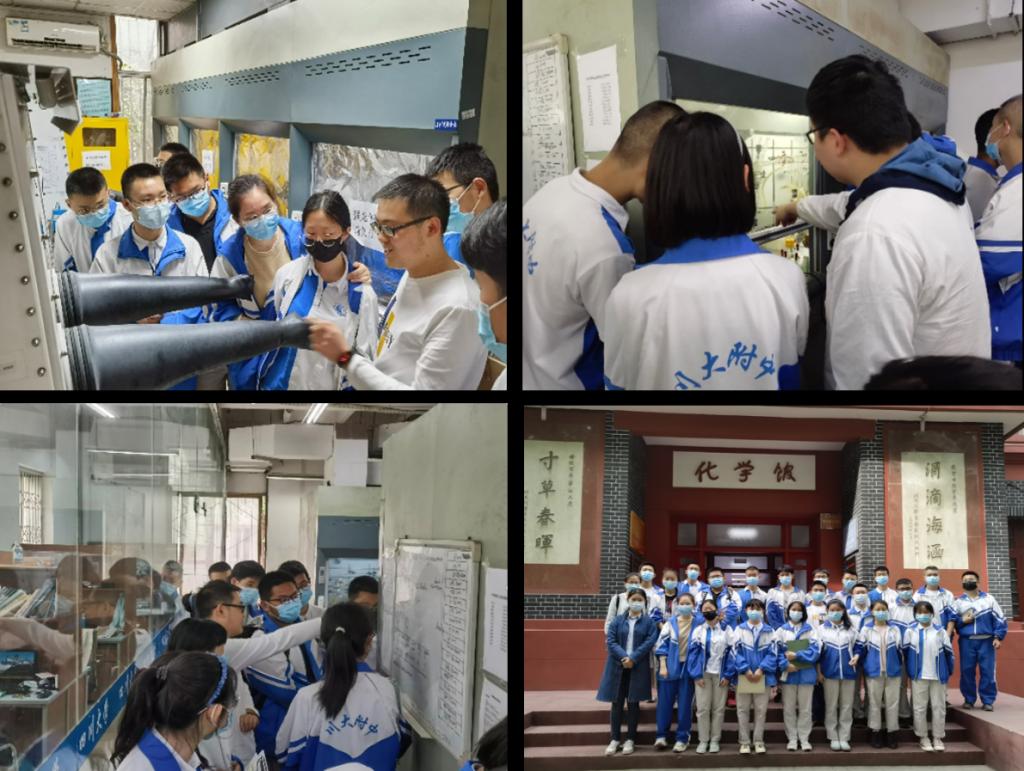 参观结束之后,同学们还意犹未尽,基于目前学习的化学知识对实验室里各种化学仪器和试剂的使用进行提问和讨论,实验室老师一一耐心解答,并鼓励同学们当前认真学习化学知识,为以后进入大学学习夯实基础。本次校园体验日活动增进了附中学生对川大和化学学科的了解,有助于促进本科招生宣传工作的开展。