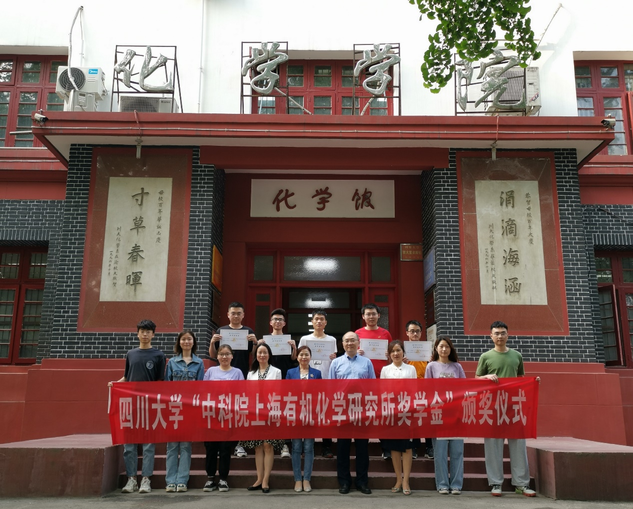会上,同学们纷纷表达了对上海有机所设立奖学金的衷心感谢,并希望今后致力于基础科学研究,努力奋发向上。颁奖仪式结束后,到场嘉宾与全体师生合影留念。