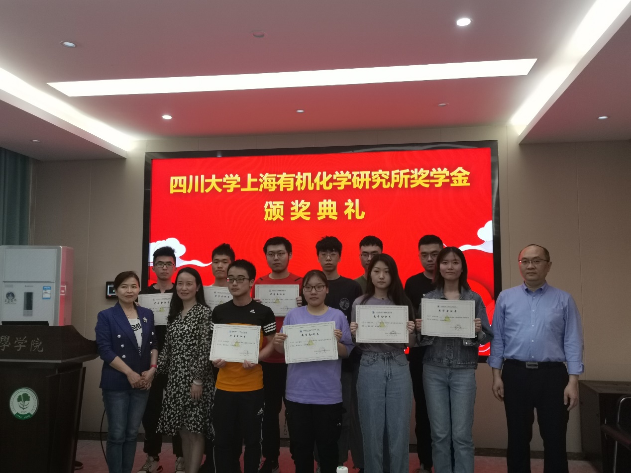 与上海有机所的深厚友谊,向上海有机所对学院学生培养的支持表达了感谢,同时对获得奖学金的同学们表示了祝贺。随后,刘文老师介绍了上海有机所的基本情况和科研底蕴,同时介绍了有机所的研究生培养机制,并鼓励同学们认真学习,积极投身科研工作。王娟老师宣布获奖学生名单,到会嘉宾为获奖学生颁奖。