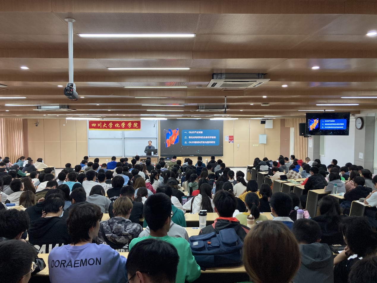 在“化学思维与材料创新”主题讲座中,游院长以OLED的发展为例,为同学们介绍了如何拓展视野,促进学科交叉融合,将化学专业与国家产业紧密结合,强调了解决“卡脖子”问题的关键在于科技创新。