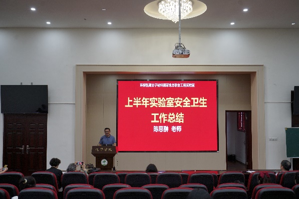 首先,李春波同学作为学生工作负责人,总结了上半年实验室党支部、学术型社团、各个学生部组织和开展活动的情况,并对各位同学为实验室所作出的贡献表示了感谢。实验室安全轮值主任陈思翀老师对本学期的实验室安全卫生情况进行总结,并督促大家严格遵守实验室安全行为规范,杜绝安全隐患,共同营造安全良好的实验环境。赵泽永老师和郭德明老师分别对实验室条件建设与仪器设备使用情况以及实验室低值易耗品使用情况进行了总结,提醒大家合理使用实验室资源,妥善规划自己的实验安排。