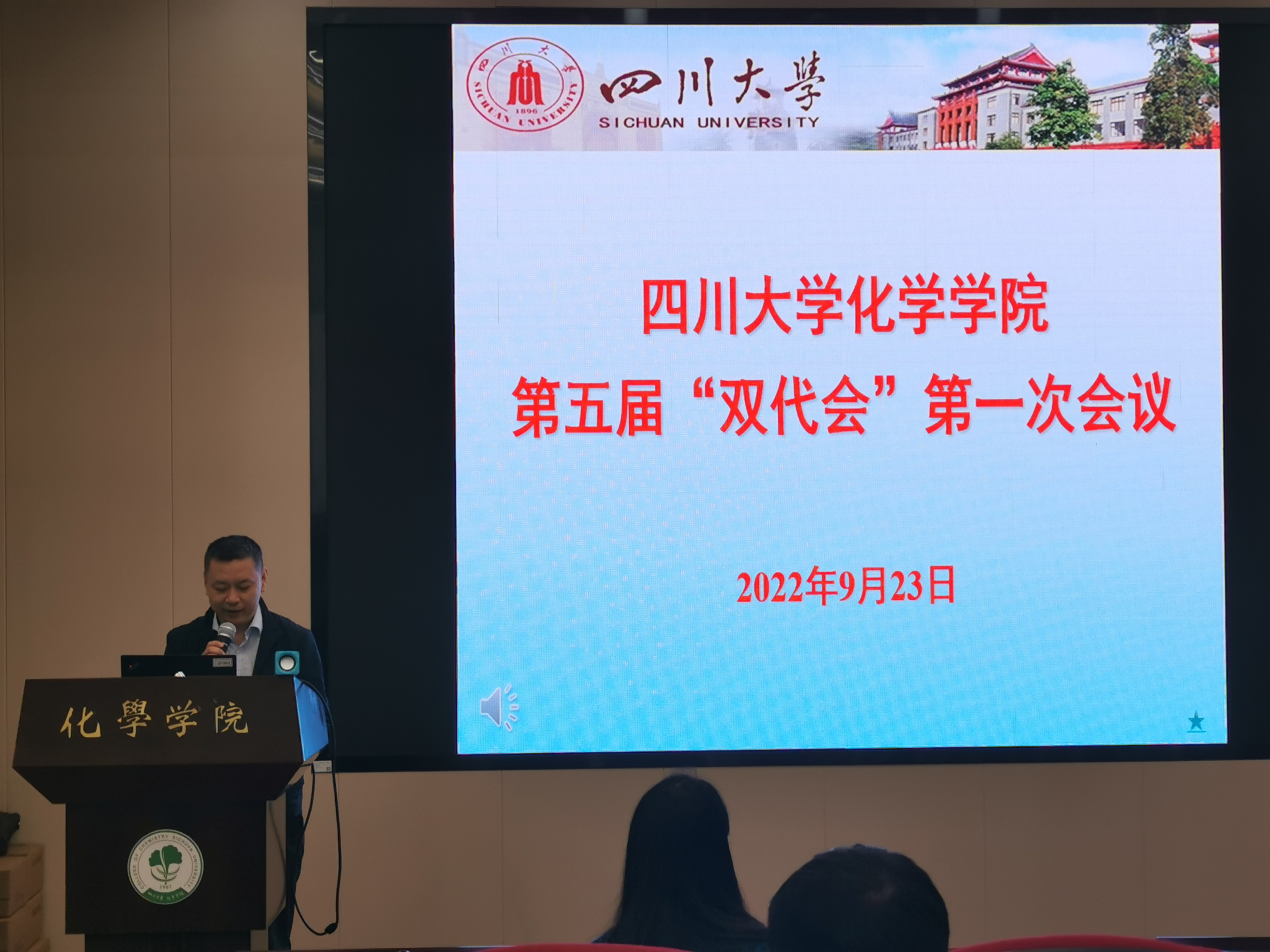 第五届教职工代表大会暨工会代表大会第一次会议在化学馆321报告厅隆重召开。本次大会的主题是“聚焦“双一流”、奋进“十四五”,凝心聚力推进学院高质量内涵发展。学院双代会代表出席本次会议,大会由学院党委书记谢均同志主持,大会执行主席为学院党委副书记肖波同志。