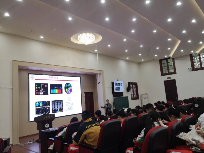 副院长郑成斌教授为参加校园开放日的树德中学光华校区师生开展了一场生动而丰富的化学前沿讲座。