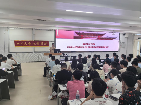 老生代表胡仕淅同学结合自己的学习经历,分享了如何在化学领域中找到兴趣和方向,以及如何平衡学习与生活的经验。他鼓励新生们要勇于提问,敢于挑战,积极参与到学术研究和各类竞赛中,锻炼自己的实践能力和创新思维。新生代表梁宇航同学则表达了对未来大学生活的期待和决心,表示将努力学习,积极探索,为化学科学的发展贡献自己的力量。