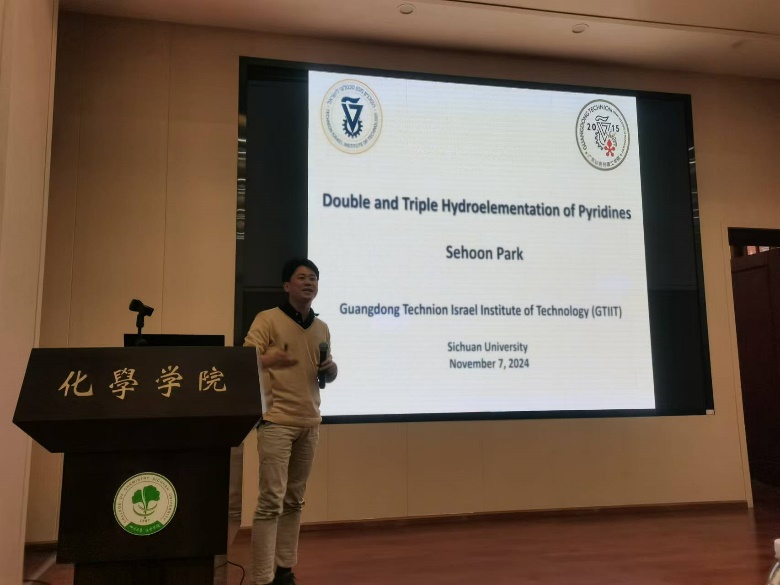 Sehoon Park副教授作了题为“Double and Triple Hydroelementation of Pyridines”的报告,详细介绍了过渡金属催化的喹啉和吡啶的双重和三重氢元素化反应的最新研究成果。