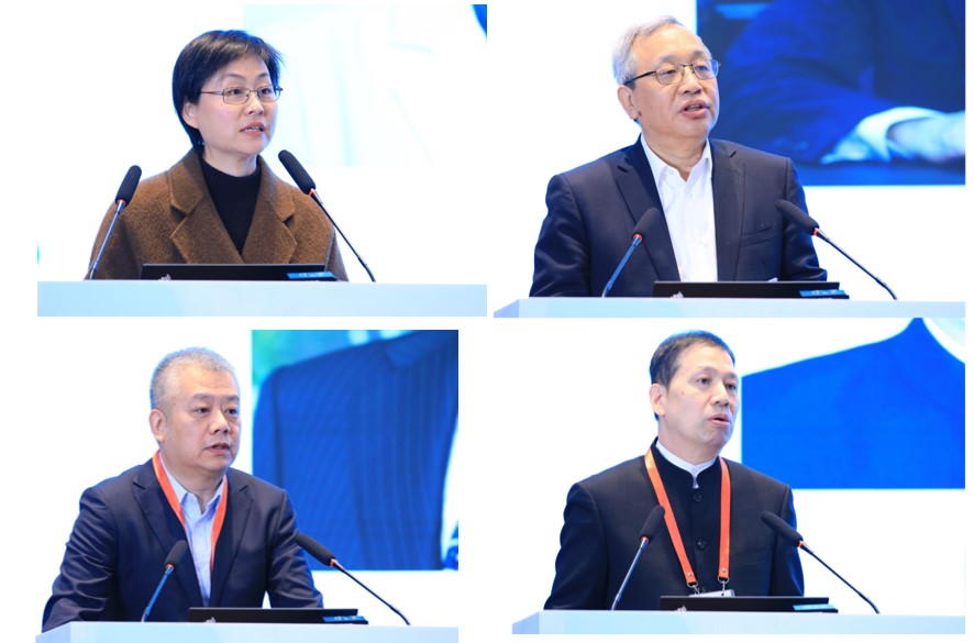 副校长韩芳教授、中国石油和化学工业联合会赵俊贵副会长兼秘书长、中国循环经济协会副会长原庆丹、中国生物多样性保护与绿色发展基金会周晋峰创会理事长开幕式致辞