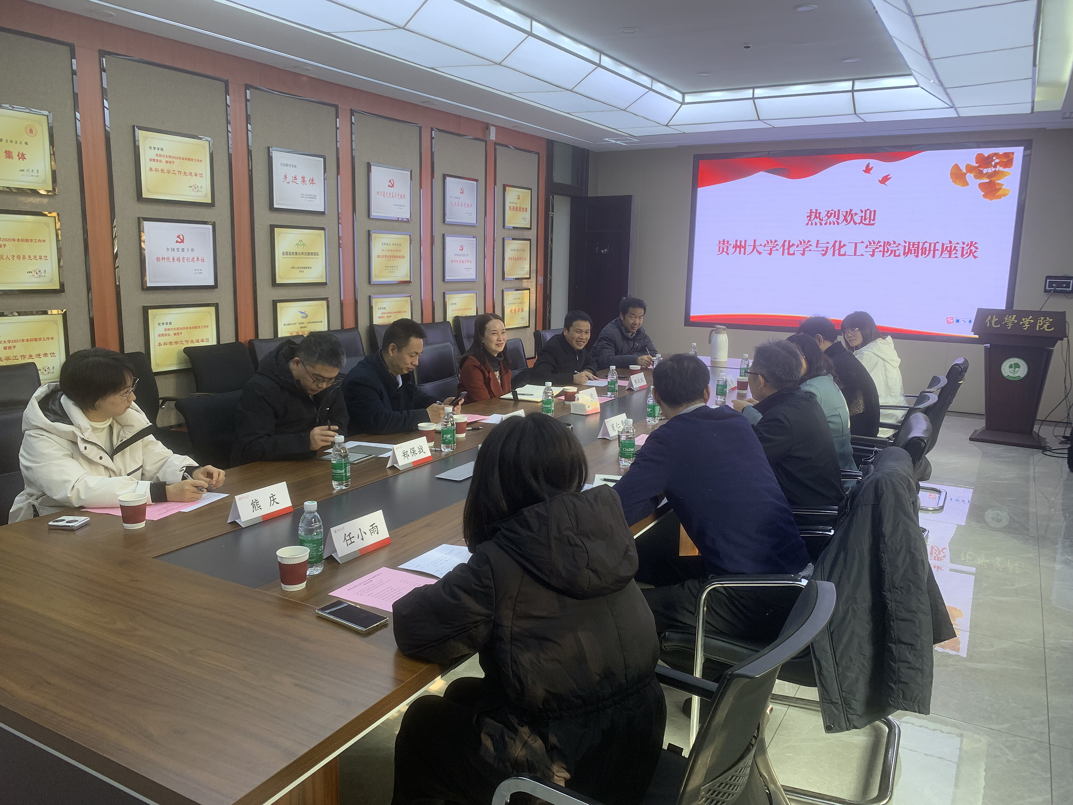 对贵州大学化学与化工学院同行表示热烈欢迎,从学院的历史发展、师资队伍、本科和研究生教育教学现状、科研平台等方面对性视频概况