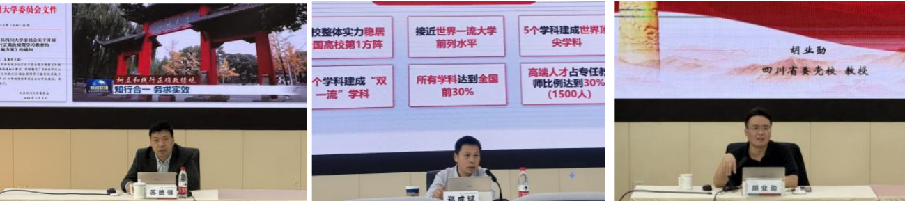 在专题培训环节,校党委组织部副部长苏德强作了题为《增强高校党支部“两个功能”,推进党建与事业“一融双高”》的辅导报告,学校发展规划处处长郑成斌以《学校“十五五”规划进展》为主题作了专题报告,四川省委党校教授胡业勋作树立和践行正确政绩观专题辅导报告。