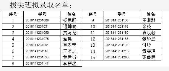 性视频 秉承公开、公正、公平的原则,通过同学自愿报名、学院笔试、综合面试等程序,最终确定以下同学进入2018级性视频 拔尖班、基地班,现予以公布: