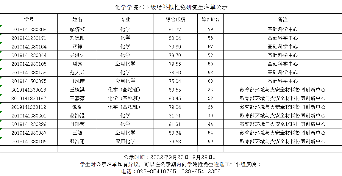 性视频 2019级增补拟推免研究生名单公示