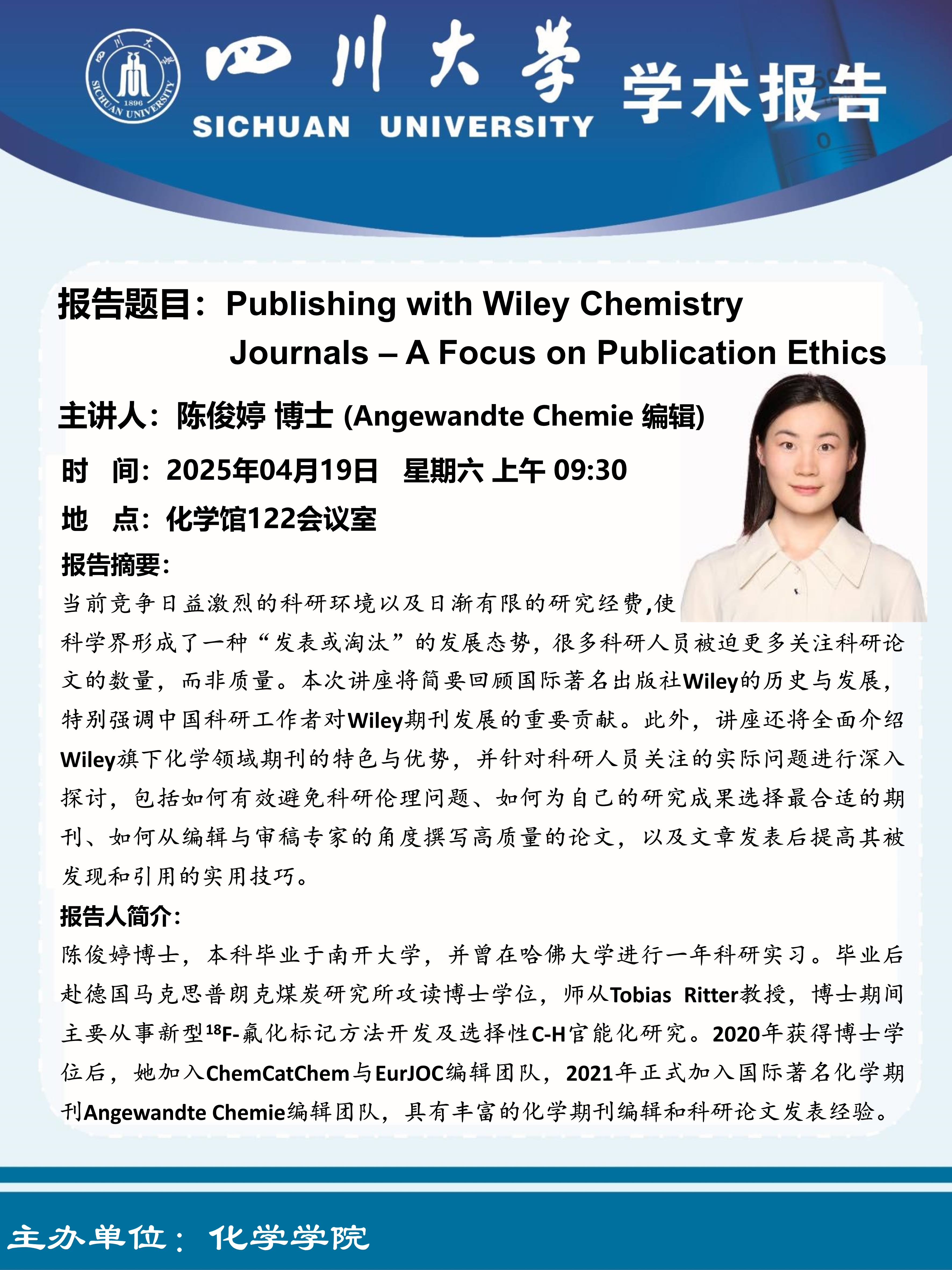 Publishing with Wiley ChemistryJournals-A Focus on Publication Ethics