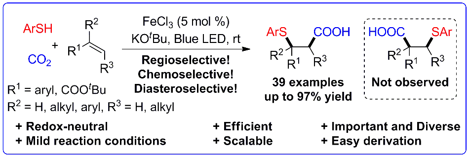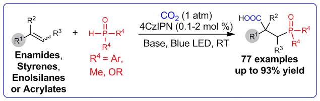 89.Q. Fu, Z.-Y. Bo, J.-H. Ye, T. Ju, H. Huang, L.-L. Liao, D.-G. Yu*, Transition metal-free phosphonocarboxylation of alkenes with carbon dioxide via visible-light photoredox catalysis. Nat. Commun. 2019, 10, 3592.