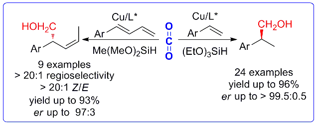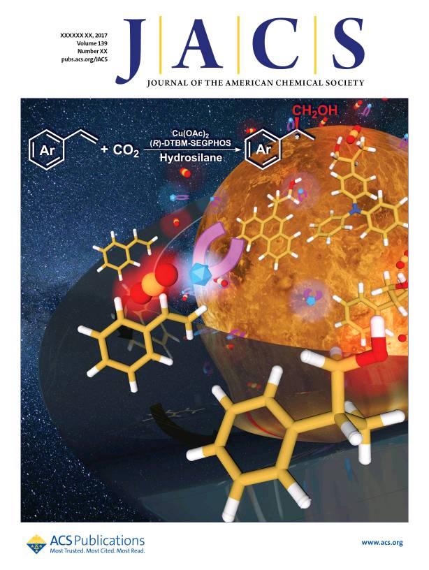 108.Y.-Y. Gui, N. Hu, X.-W. Chen, L.-L. Liao, T. Ju, J.-H. Ye, Z. Zhang, J. Li, D.-G. Yu*, Highly Regio- and Enantioselective Copper-Catalyzed Reductive Hydroxymethylation of Styrenes and 1,3-Dienes with CO2. J. Am. Chem. Soc. 2017, 139, 17011. (Equal contribution. Cover. Top 4 most read JACS papers in November, 2017. Highlighted by Synfacts 2018, 14, 0177, CJOC, X-MOL, OPR&D and Organic Chemistry Portal)